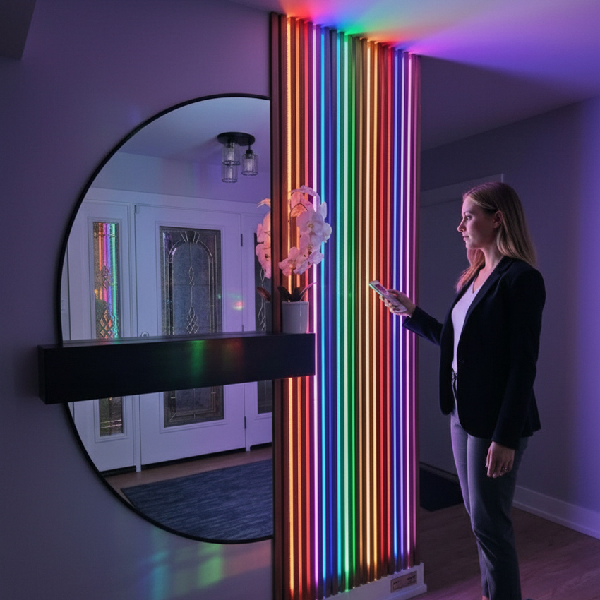 These strips provide a smooth, continuous “line of light” with vibrant RGB color-changing capabilities. For customization, they can be cut at marked points every 1.97 inches (50 mm). They support a minimum bending diameter of 11 inches for side-bend applications and 4.72 inches for top-bend configurations, with a maximum twist of 360 degrees per 3.3 feet. Each strip supports a maximum run of 16.4 feet (5 meters). The IP67 waterproof rating ensures reliable performance outdoors or in wet environments.